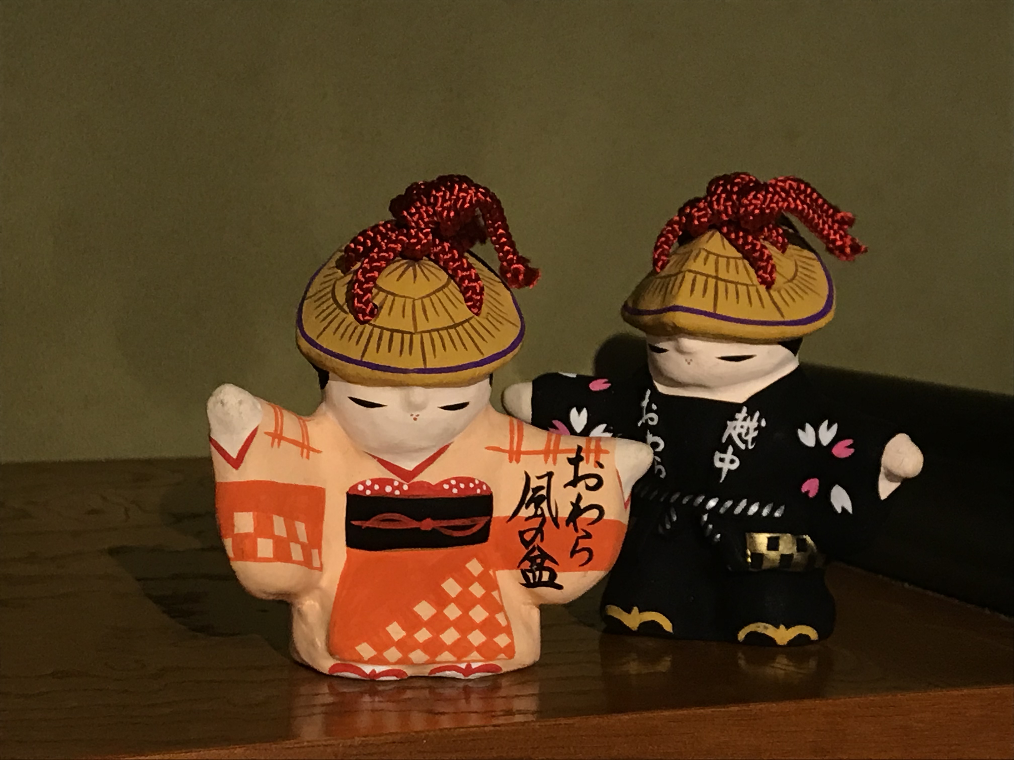 人形ミュージアムでは、富山県八尾市で毎年9月1日から3日にかけて行われている「おわら風の盆」をモチーフにした土人形が展示されています。