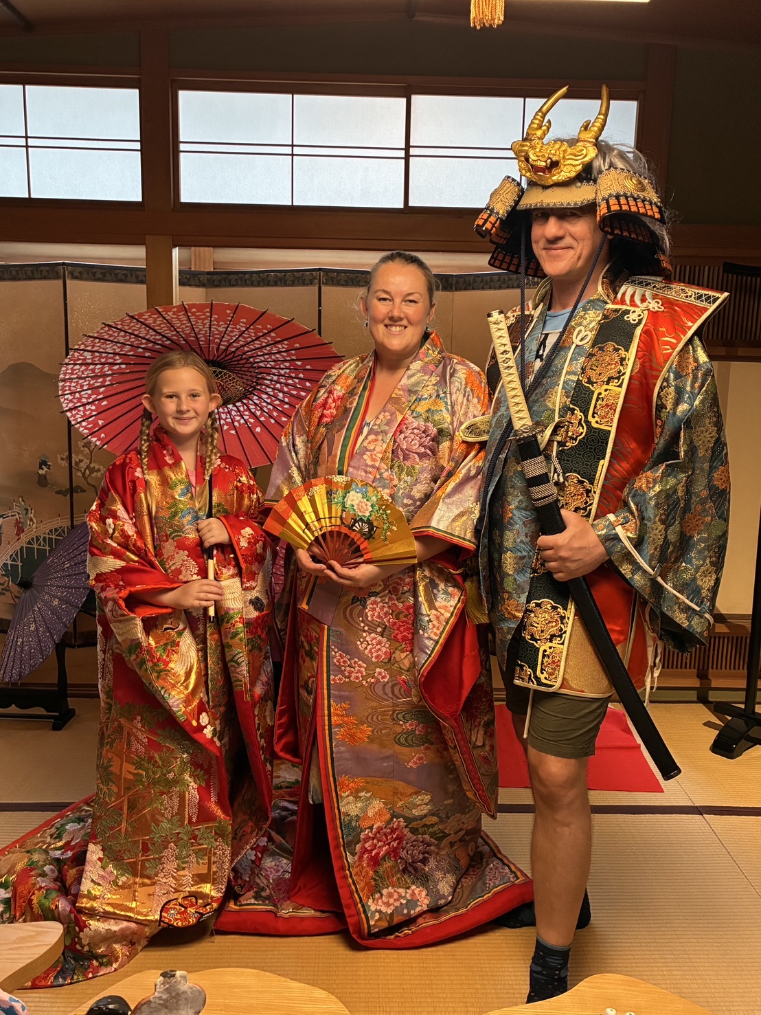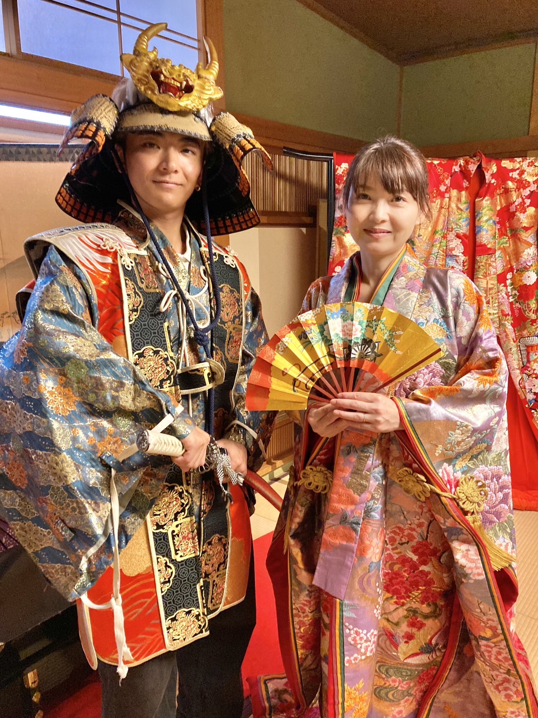 Costume Try-on (Samurai Helmet, Irouchikake: Japanese weeding Kimono)